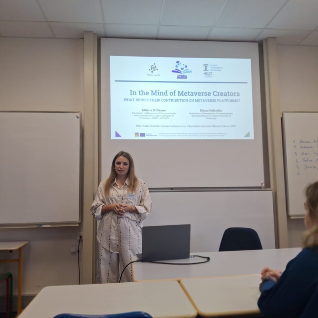 INNOV-ACTS hosted Marie Curie Fellow Milena Di Nenno presented her PhD research at the MCIS 2025 held in Nantes on 1-4 October 2025. Her work, part of the Marie Skłodowska-Curie Actions AGORA project, investigates how to balance responsibility and profitability in the metaverse through business model choices.